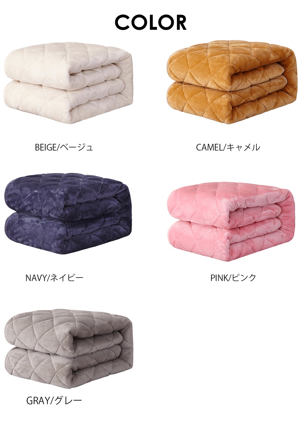 | カラー | GRAY/グレー CAMEL/キャメル BEIGE/ベージュ NAVY/ネイビー PINK/ピンク |