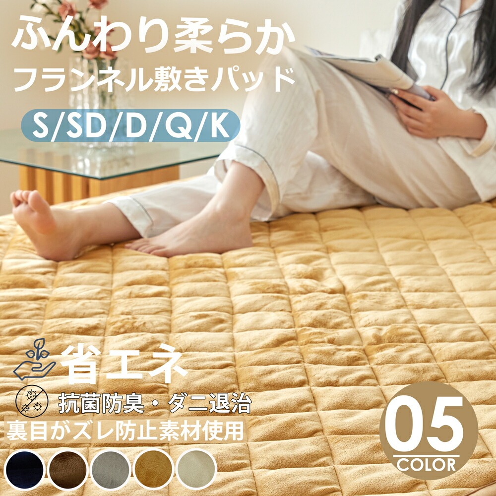 フランネル敷きパッド あったか シングル セミダブル ダブル クイーン キング 秋冬用 暖かい 6170