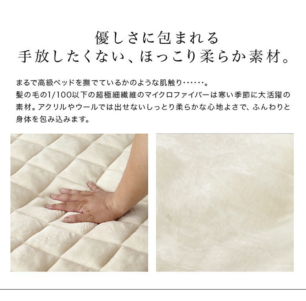 ふわふわ、なめらかでやみつきになる手触り。 とろけるような極上の肌触りと、驚くほどのなめらかさ。 高密度の極細繊維が空気をため込むため、ふんわりあたたかく包みこまれるような心地良さです。 素材が持つ独自の光沢と、深みのある上品でなめらかな色合い。適度な弾力とふかふかのボリュームで、快適ににあたたかく過ごせます。 昔ながらの厚手の重い毛布の「ずしっと」感もありません。寝返りも打ちやすく、よりノンストレスな眠りに。 静電気防止加工済み あのイヤなバチバチを軽減。 より乾きやすく、ご家庭で丸洗いできます。 ご家庭で洗うことができますから清潔で安心。これはとっても便利! さらに、薄手で軽量なので、一般的な毛布より乾きやすく、洗いやすい。 |